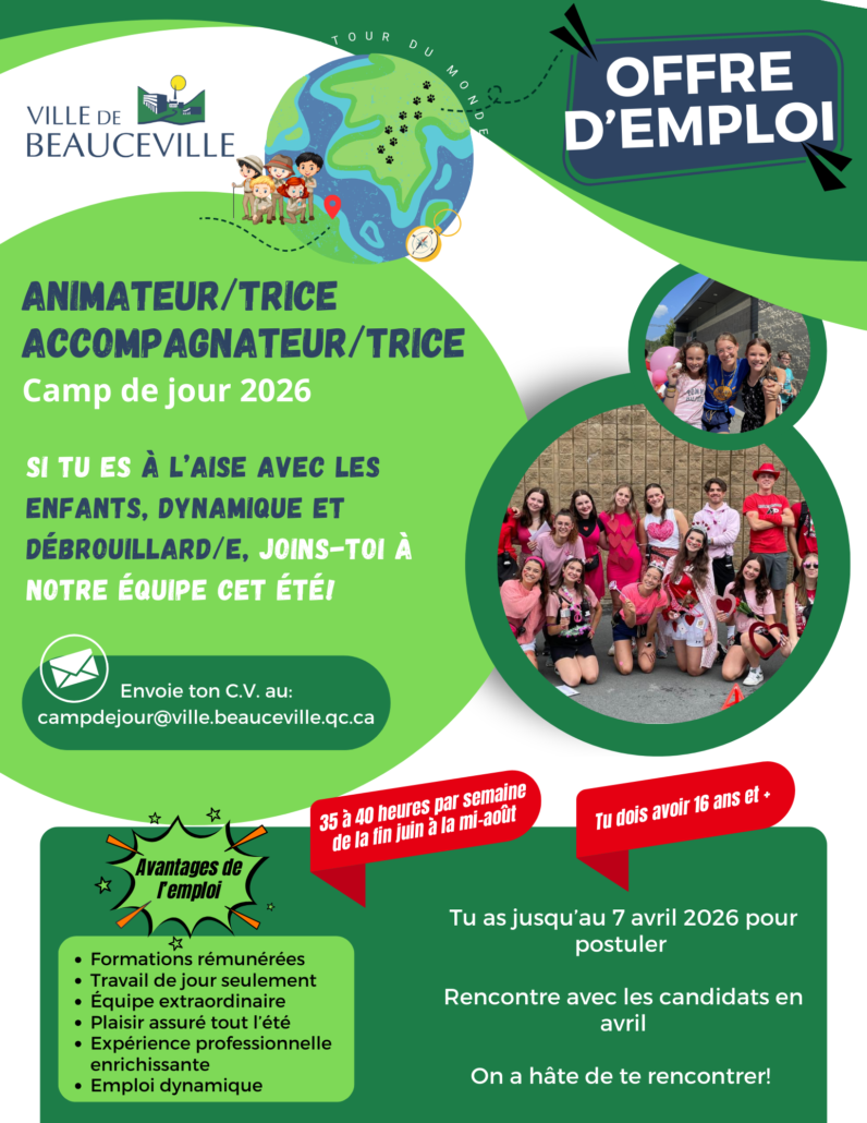 Le camp de jour de Beauceville 2026 recrute:
