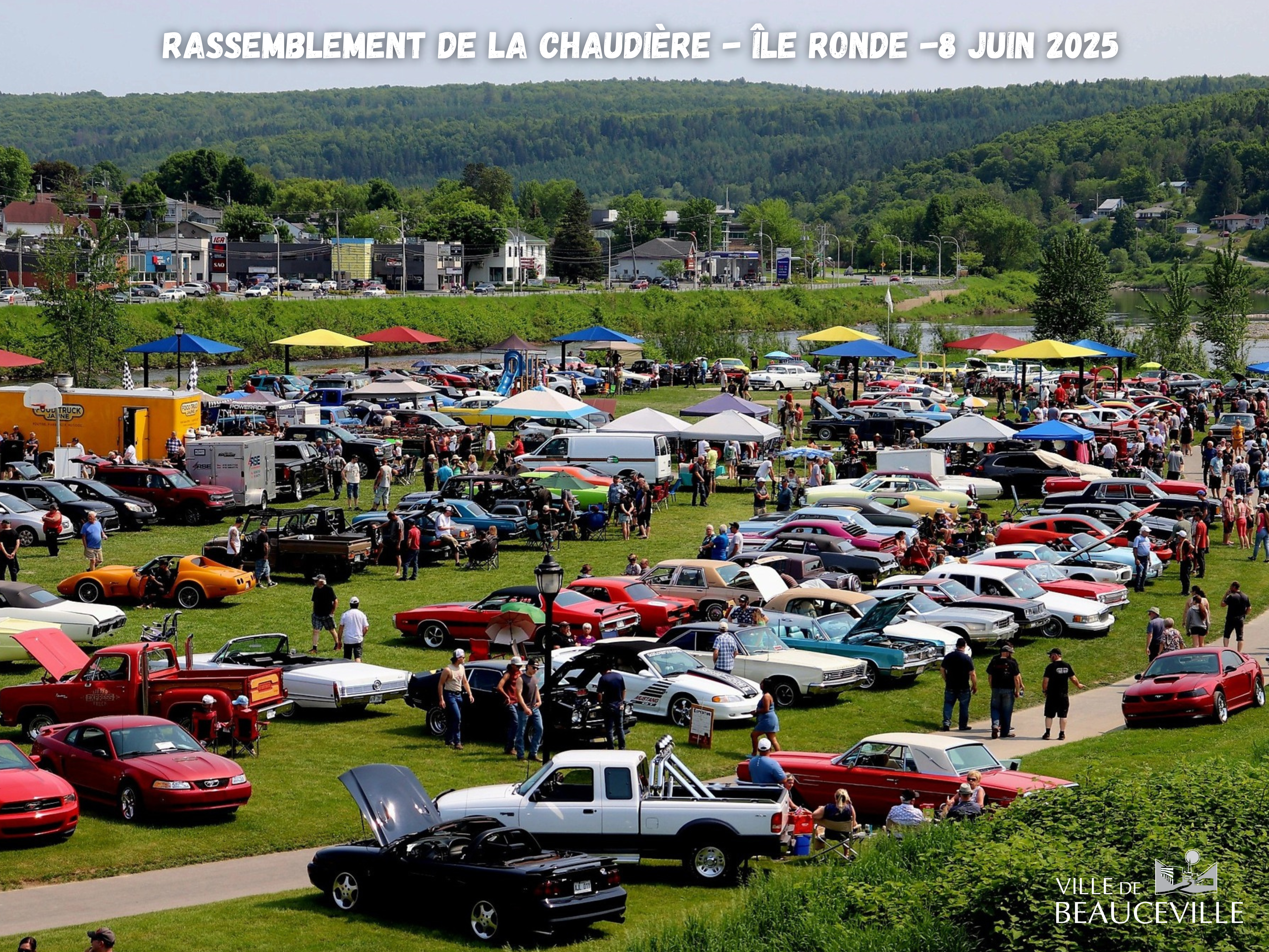 Le Rassemblement de la Chaudière est un évènement de type exposition de voitures antiques et sport, d’hier à aujourd’hui. Ceci a lieu sur l’île Ronde et est organisé par des passionnés de voiture vintage. Pour informations, vous pouvez joindre M. Michel Poulin, organisateur.