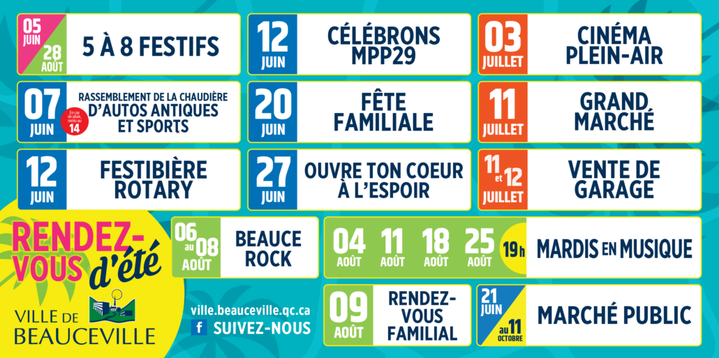Les 11 et 12 juillet 2026, les citoyens qui le désirent sont invités à faire une vente de garage sur leur terrain. L’équipe de la Vie communautaire de la Ville de Beauceville fera une période d’inscription afin de produire une liste des emplacements où il y aura une vente sur le territoire de la Ville de Beauceville. Surveillez nos publications Facebook dans le mois de juin afin de connaître les détails et la façon de procéder pour s’inscrire.